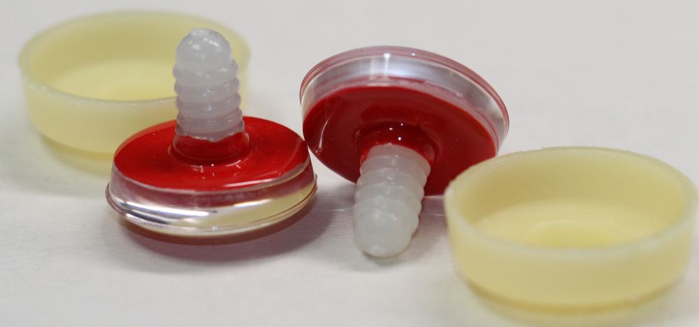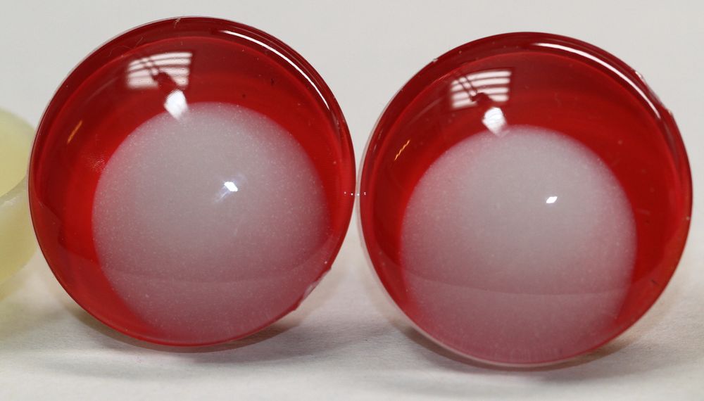 Preview: 1 Paar Sicherheitsaugen Schielaugen trapezoid 25 mm rot nachtleuchtende Pupille