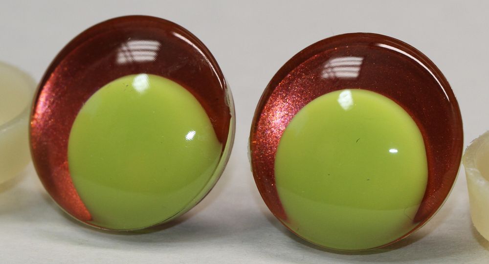 1 Paar Sicherheitsaugen trapezoid 25 mm kupfer metallic Pupille grün