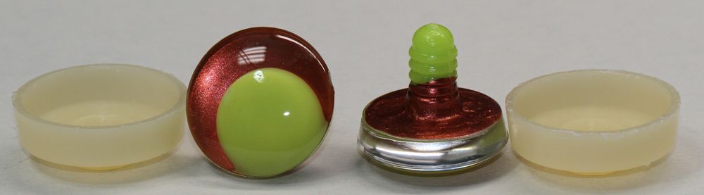 Preview: 1 Paar Sicherheitsaugen trapezoid 25 mm kupfer metallic Pupille grün