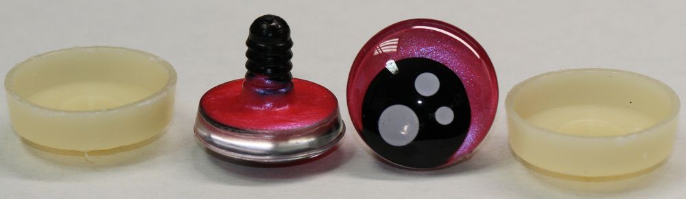 Preview: 1 Paar Sicherheitsaugen trapezoid 25 mm rotblau metallic Pupille schwarz mit weißen Punkten
