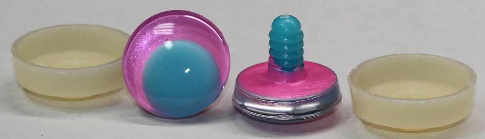 Preview: 1 Paar Sicherheitsaugen trapezoid 25 mm pink metallic Pupille türkis