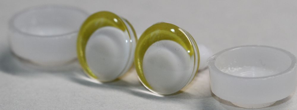 Mobile Preview: 1 Paar Sicherheitsaugen trapezoid 14 mm gelb metallic weiße Pupille Schielaugen