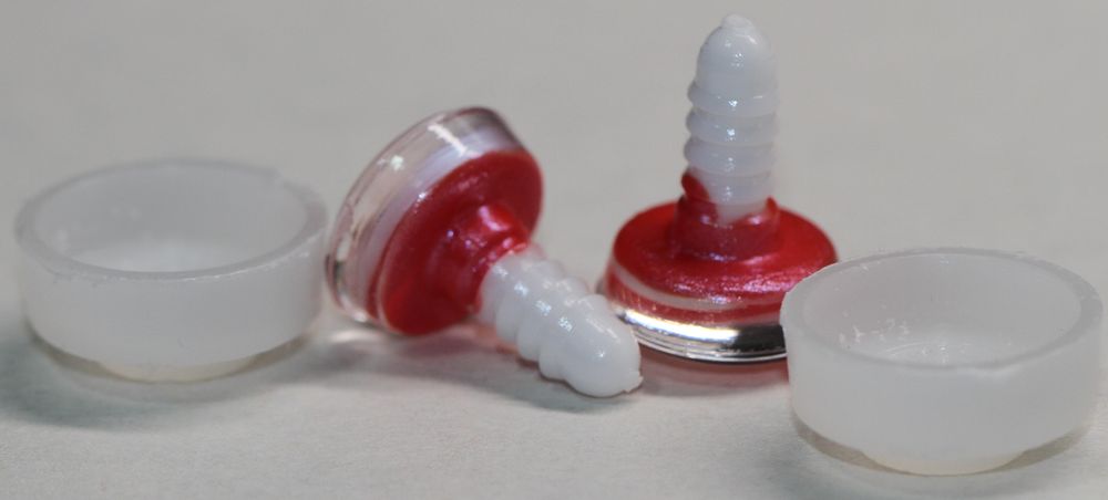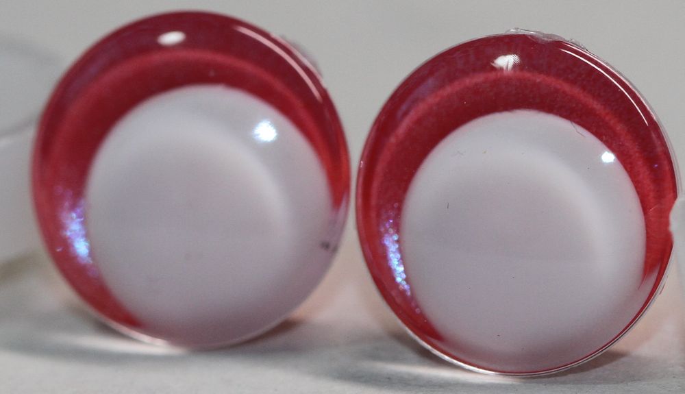 Preview: 1 Paar Sicherheitsaugen trapezoid 14 mm rotblau metallic weiße Pupille Schielaugen