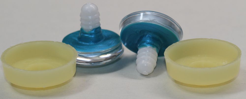 Preview: 1 Paar Sicherheitsaugen trapezoid 25 mm caribic blau metallic herzförmige Pupille weiß