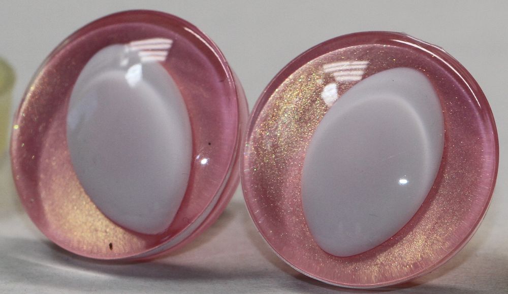Bestandteil des Kaufs ist auch je Auge eine Folie mit Glitter, welche optional hinten auf das Auge gesteckt werden kann (nur vor der Montage!) Die Folie wird dann durch die speziellen Halterungen von hinten beim Montieren mit dem Auge umschlossen, wenn diese eingerastet sind und lässt sich dann nicht mehr entfernen.