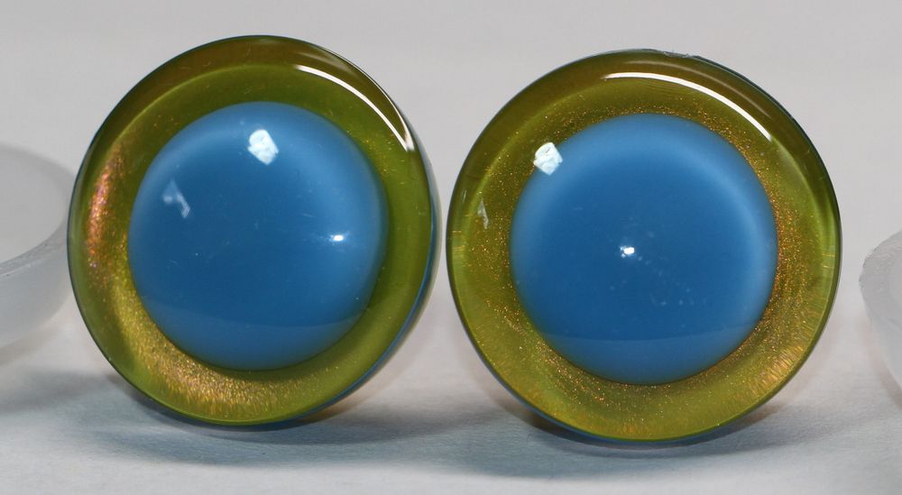 Bestandteil des Kaufs ist auch je Auge eine Folie mit Glitter, welche optional hinten auf das Auge gesteckt werden kann (nur vor der Montage!) Die Folie wird dann durch die speziellen Halterungen von hinten beim Montieren mit dem Auge umschlossen, wenn diese eingerastet sind und lässt sich dann nicht mehr entfernen.