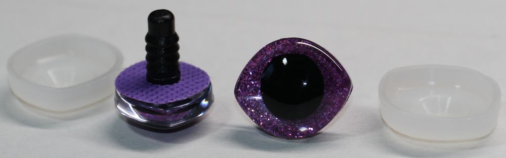 Bestandteil des Kaufs ist auch je Auge eine Folie mit Glitter, welche optional hinten auf das Auge gesteckt werden kann (nur vor der Montage!) Die Folie wird dann durch die speziellen Halterungen von hinten beim Montieren mit dem Auge umschlossen, wenn diese eingerastet sind und lässt sich dann nicht mehr entfernen.
