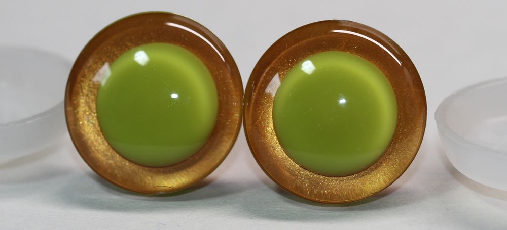 1 Paar Sicherheitsaugen trapezoid orange gelb Prisma Color 25 mm grüne Pupille