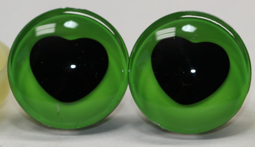 1 Paar Sicherheitsaugen trapezoid 25 mm hellgrün herzförmige Pupille schwarz