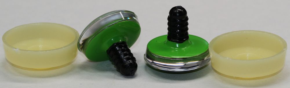 Preview: 1 Paar Sicherheitsaugen trapezoid 25 mm hellgrün herzförmige Pupille schwarz