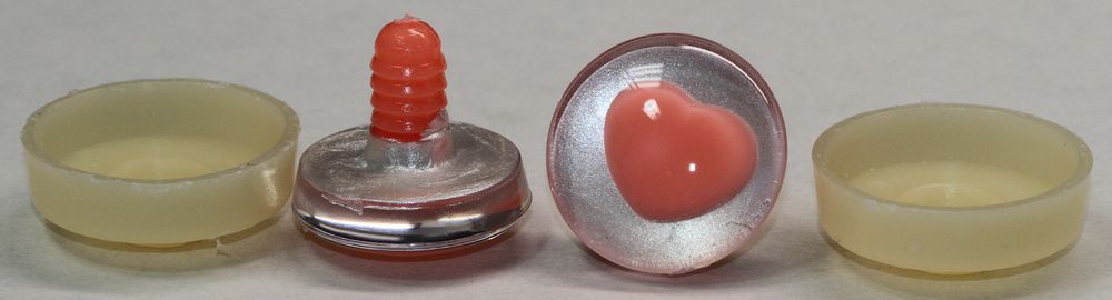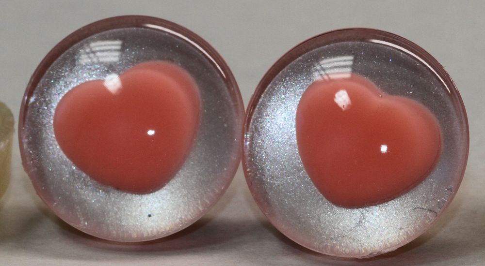 Mobile Preview: 1 Paar Sicherheitsaugen trapezoid 25 mm hellsilber metallic herzförmige Pupille rosa