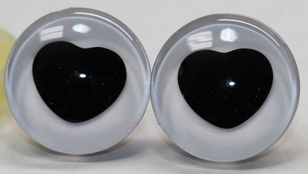 Mobile Preview: 1 Paar Sicherheitsaugen trapezoid 25 mm weiß herzförmige Pupille schwarz