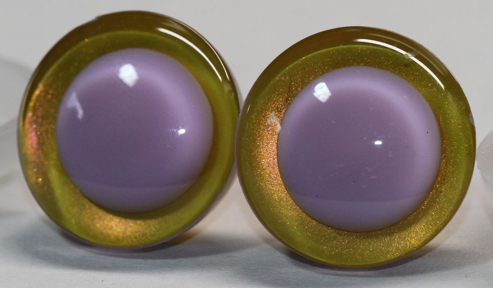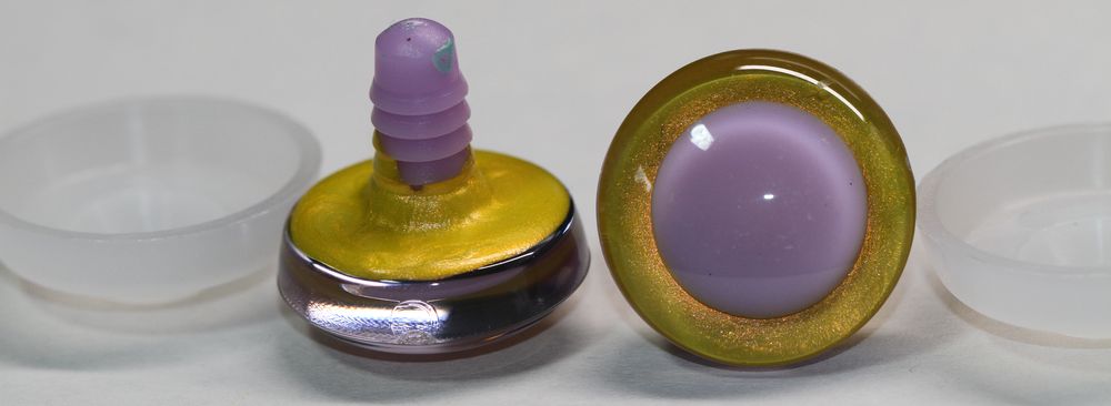 Bestandteil des Kaufs ist auch je Auge eine Folie mit Glitter, welche optional hinten auf das Auge gesteckt werden kann (nur vor der Montage!) Die Folie wird dann durch die speziellen Halterungen von hinten beim Montieren mit dem Auge umschlossen, wenn diese eingerastet sind und lässt sich dann nicht mehr entfernen.