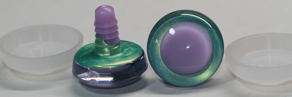 Mobile Preview: 1 Paar Sicherheitsaugen trapezoid grün gelb türkis Prisma Color 25 mm lila Pupille