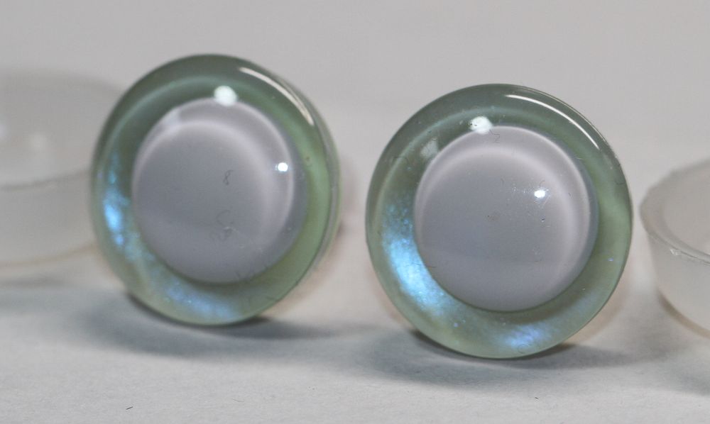 Bestandteil des Kaufs ist auch je Auge eine Folie mit Glitter, welche optional hinten auf das Auge gesteckt werden kann (nur vor der Montage!) Die Folie wird dann durch die speziellen Halterungen von hinten beim Montieren mit dem Auge umschlossen, wenn diese eingerastet sind und lässt sich dann nicht mehr entfernen.