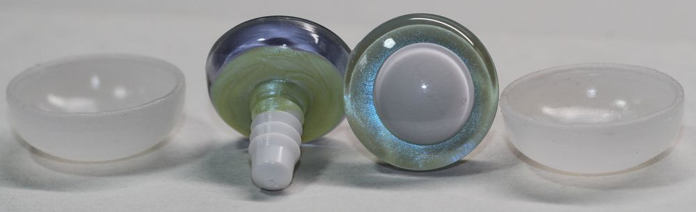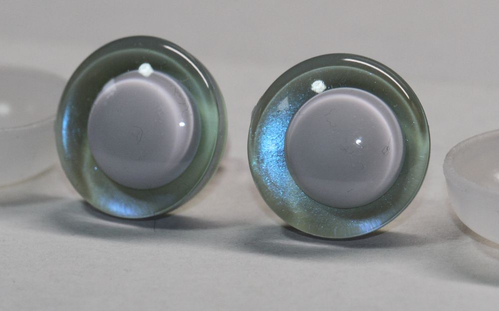 Bestandteil des Kaufs ist auch je Auge eine Folie mit Glitter, welche optional hinten auf das Auge gesteckt werden kann (nur vor der Montage!) Die Folie wird dann durch die speziellen Halterungen von hinten beim Montieren mit dem Auge umschlossen, wenn diese eingerastet sind und lässt sich dann nicht mehr entfernen.