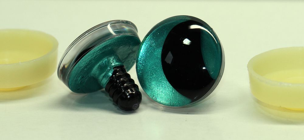 1 Paar Sicherheitsaugen trapezoid 25 mm türkisgrün metallic gebogene Pupille Schaf Mond