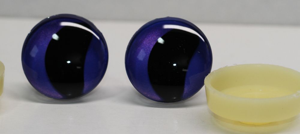 1 Paar Sicherheitsaugen trapezoid 25 mm violett metallic gebogene Pupille Schaf Mond