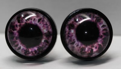 Die Augen haben einen Außendurchmesser von 14 mm, die Glaslinse hat einen Durchmesser von 12 mm.