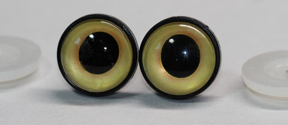 1 Paar 17 mm Sicherheitsaugen Kunststoff mit Glas goldgelb ovale Pupille
