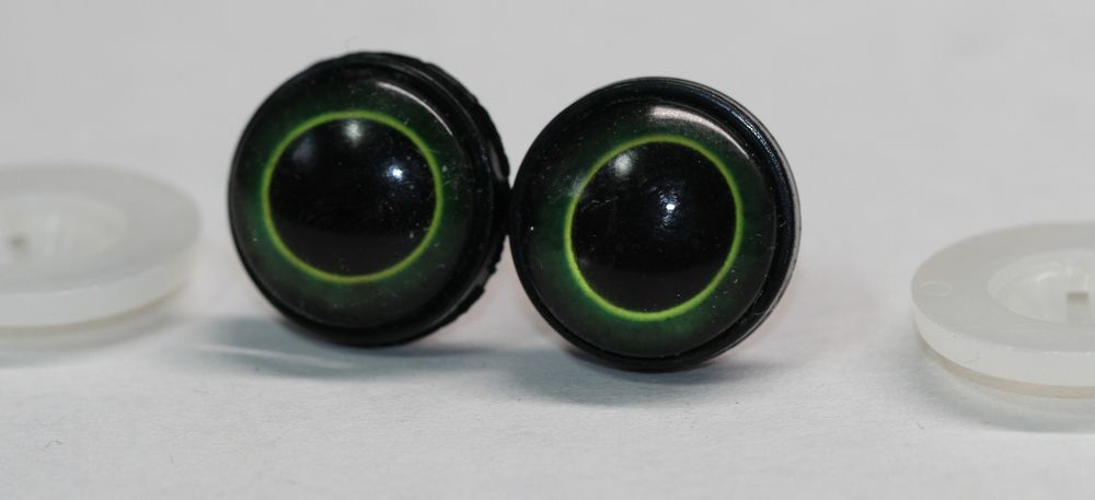 1 Paar 17 mm Sicherheitsaugen Kunststoff mit Glas grün dunkel ovale Pupille