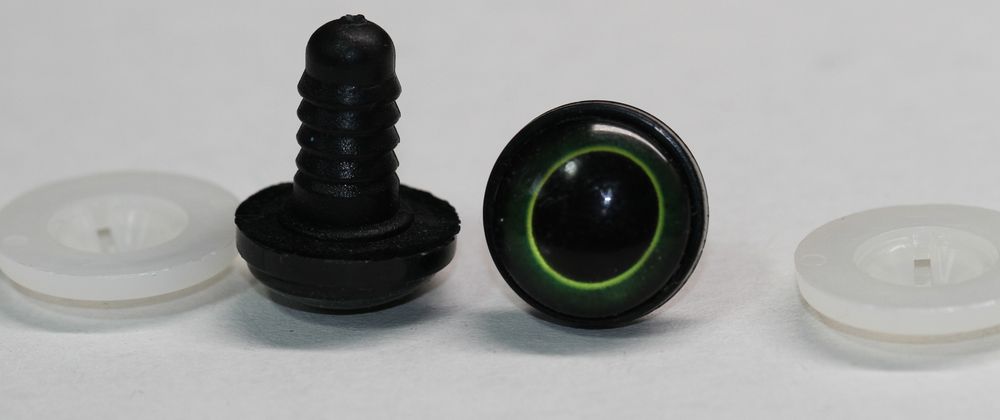Preview: 1 Paar 17 mm Sicherheitsaugen Kunststoff mit Glas grün dunkel ovale Pupille