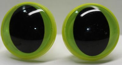 Die Augen haben einen Außendurchmesser von 22 mm, die Glaslinse hat einen Durchmesser von 20 mm.