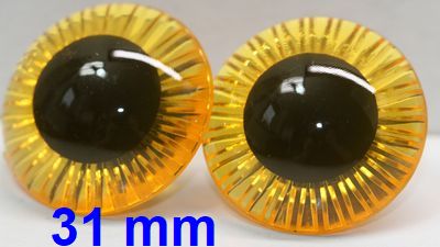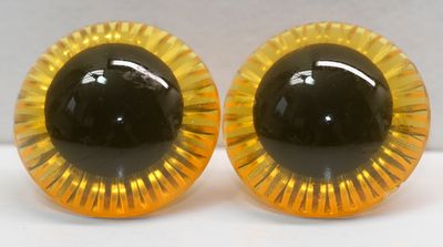 Die Sicherheitsaugen für Kuscheltiere, wie wir sie auch bei unseren Fellkuscheltieren einsetzen sind aus nahezu unzerstörbarem Kunststoff und durchsichtig (transparent) durchgefärbt. Nur die Pupille ist undurchsichtig schwarz.