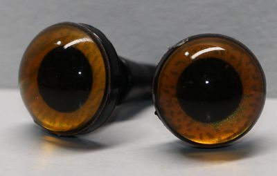 Preview: 1 Paar Sicherheitsaugen 12 mm mittelgroße runde Pupillen kupfergold schimmernd verschiedenfarbige Iris