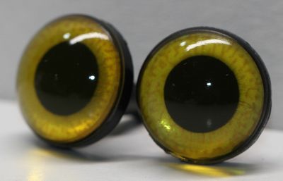 Preview: 1 Paar Sicherheitsaugen 16 mm mittelgroße runde Pupillen goldgelb schimmernd verschiedenfarbige Iris