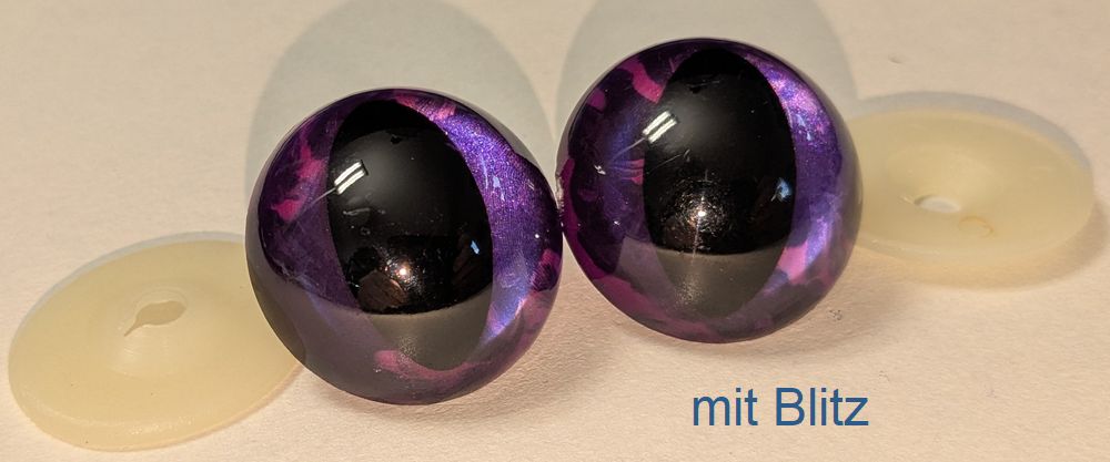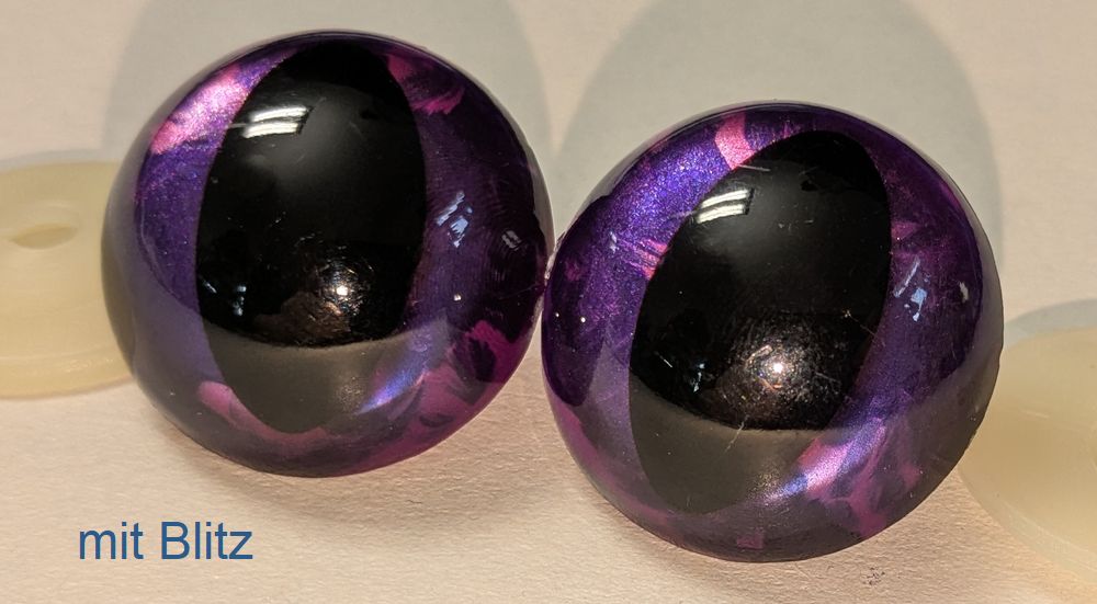 Die Sicherheitsaugen für Kuscheltiere, wie wir sie auch bei unseren Fellkuscheltieren einsetzen sind aus nahezu unzerstörbarem Kunststoff und undurchsichtig (opak) von Hand hintermalt. Die Bemalung der Sicherheitskunststoffaugen ist „Handmade in Germany“!
