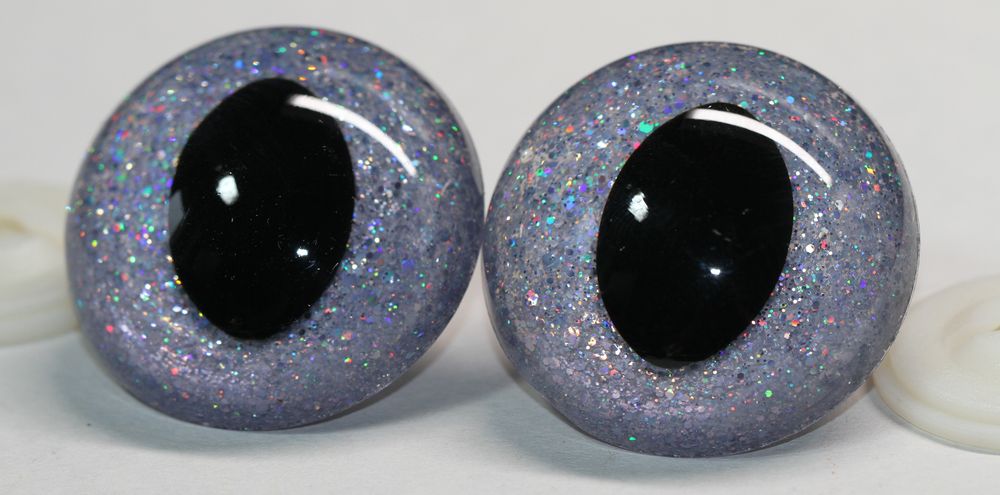 Sicherheitsaugen Katze Drache Unikat Glitter Holo silber 40 mm
