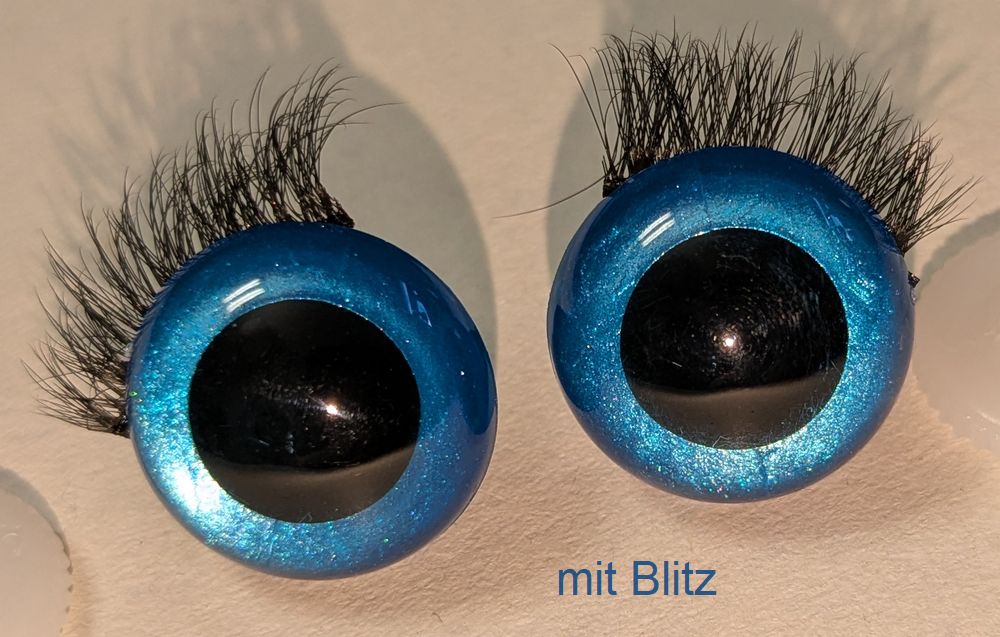 Die Sicherheitsaugen sind verfügbar in der Größe 18 mm (Augendurchmesser - die Wimpern sind dann länger)