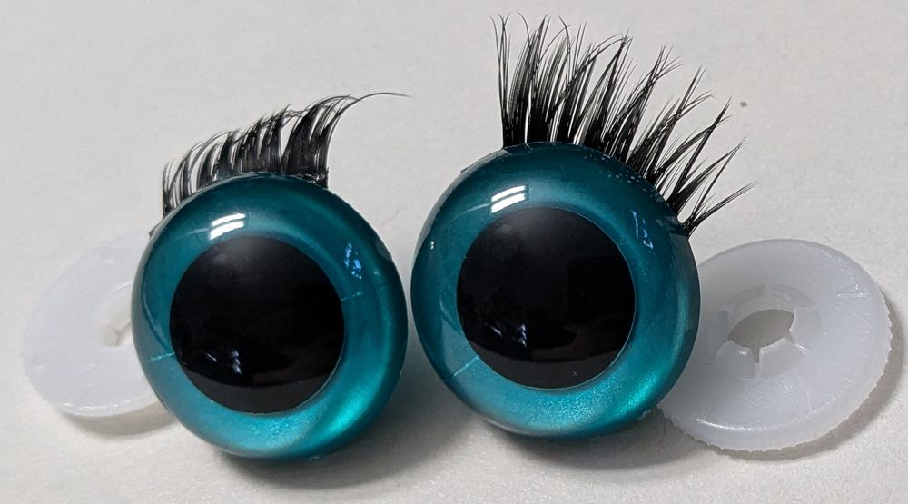 Die Sicherheitsaugen sind verfügbar in der Größe 24 mm (Augendurchmesser - die Wimpern sind dann länger)