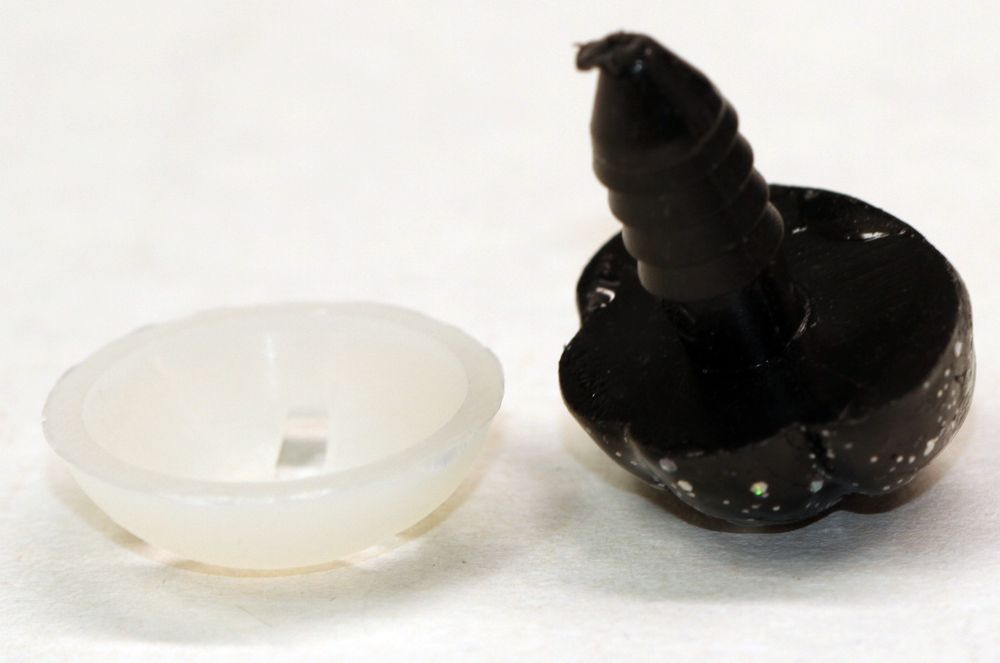 Die Sicherheitsnasen für Kuscheltiere, wie wir sie auch bei unseren Fellkuscheltieren einsetzen sind aus nahezu unzerstörbarem Kunststoff und hart glänzend und schwarz.