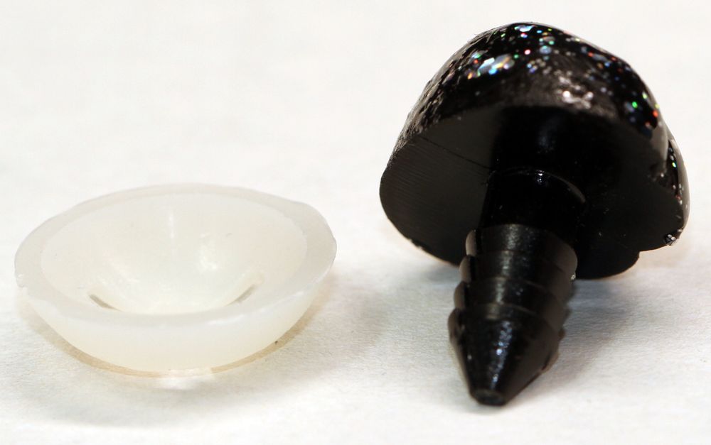 Die Sicherheitsnasen für Kuscheltiere, wie wir sie auch bei unseren Fellkuscheltieren einsetzen sind aus nahezu unzerstörbarem Kunststoff und hart glänzend und schwarz.
