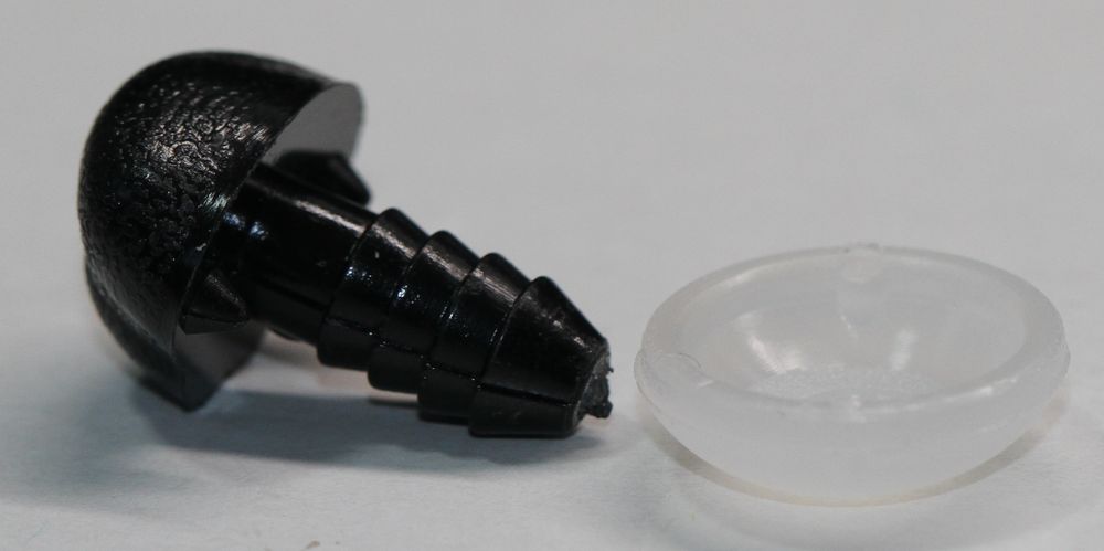 Die Sicherheitsnasen für Kuscheltiere, wie wir sie auch bei unseren Fellkuscheltieren einsetzen sind aus nahezu unzerstörbarem Kunststoff und hart glänzend und schwarz.