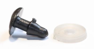 Die Sicherheitsnasen für Kuscheltiere, wie wir sie auch bei unseren Fellkuscheltieren einsetzen sind aus nahezu unzerstörbarem Kunststoff und hart glänzend und schwarz.