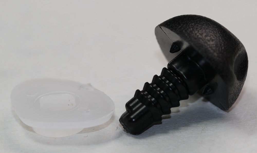 Die Sicherheitsnasen für Kuscheltiere, wie wir sie auch bei unseren Fellkuscheltieren einsetzen sind aus nahezu unzerstörbarem Kunststoff und hart glänzend und schwarz.