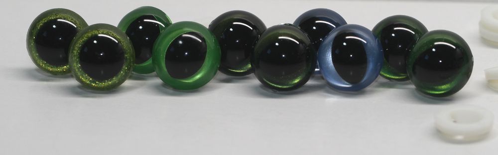 In der Lieferung enthalten sind auch immer die Sicherheitsscheiben, wie auf dem Foto zu sehen. Super zum Basteln von eigenen Teddys, Puppen oder Kuscheltieren.