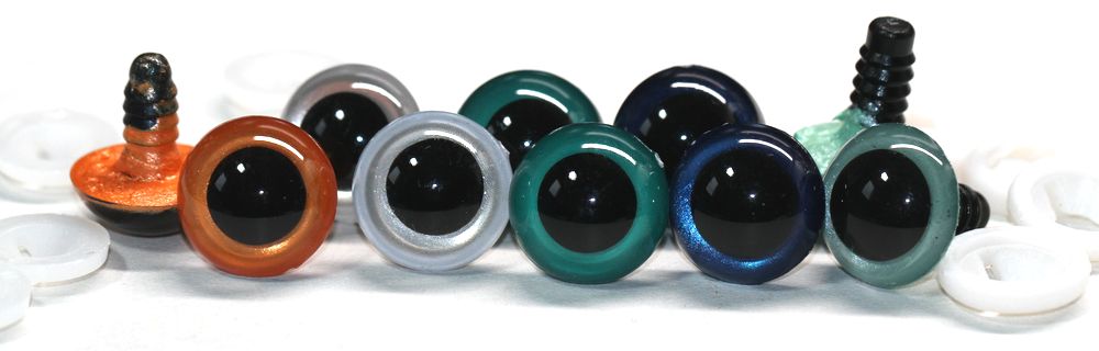 In der Lieferung enthalten sind auch immer die Sicherheitsscheiben, wie auf dem Foto zu sehen. Super zum Basteln von eigenen Teddys, Puppen oder Kuscheltieren.