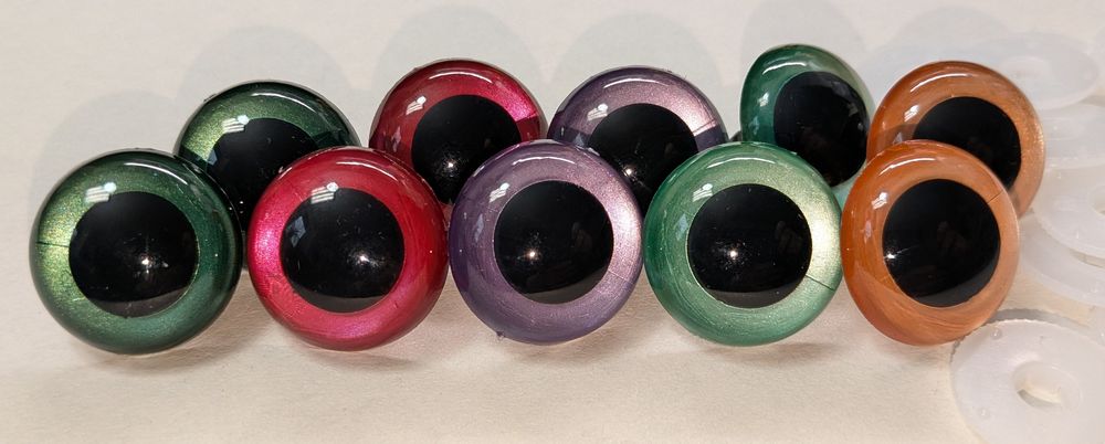 In der Lieferung enthalten sind auch immer die Sicherheitsscheiben, wie auf dem Foto zu sehen. Super zum Basteln von eigenen Teddys, Puppen oder Kuscheltieren.