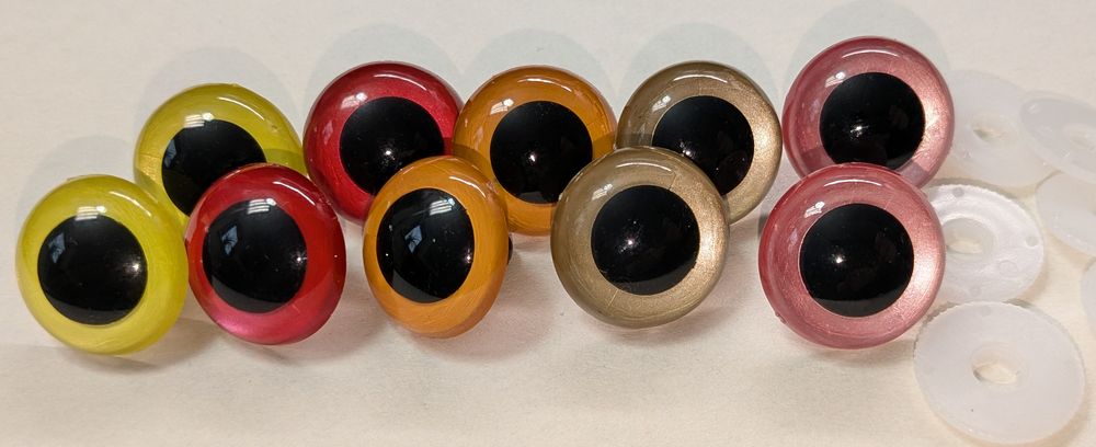 In der Lieferung enthalten sind auch immer die Sicherheitsscheiben, wie auf dem Foto zu sehen. Super zum Basteln von eigenen Teddys, Puppen oder Kuscheltieren.