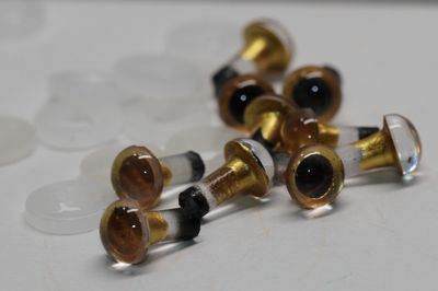 Sonderangebot: 5 Paar Kunststoffaugen 6 mm Pupille transparent - zum Einkleben gold metallic