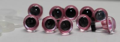 Sonderangebot: 5 Paar Kunststoffaugen 6 mm Pupille transparent - zum Einkleben rosa metallic